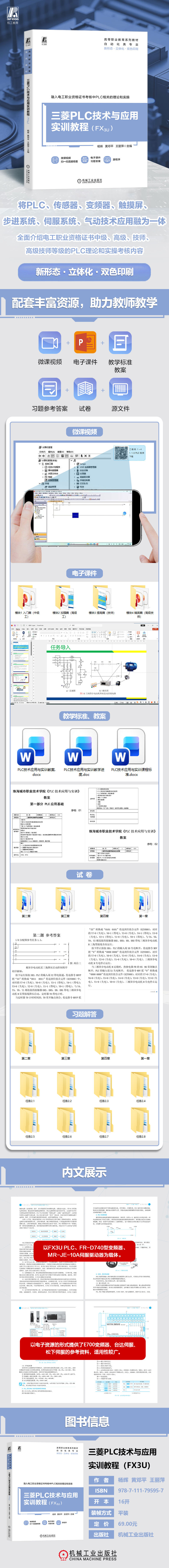 --以电子资源的形式提供了E700变频器、台达伺服、松下伺服的参考资料,适用性较广。